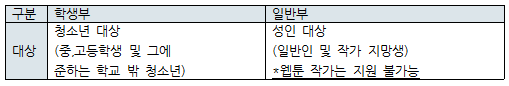 - 수상특전) 웹툰 작가 멘토링 및 작가데뷔 기회제공