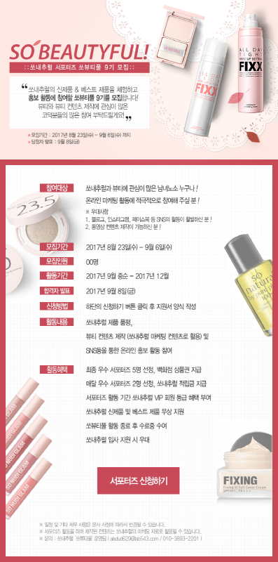 쏘내추럴 서포터즈 쏘뷰티풀 9기 모집