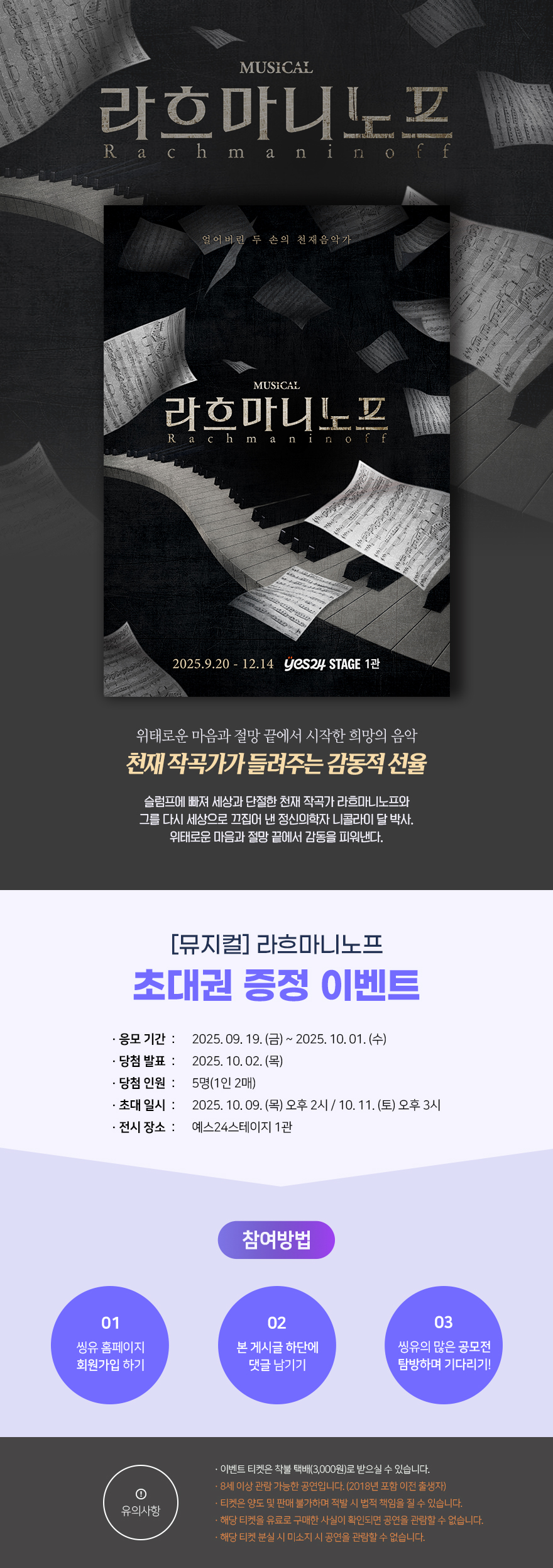 뮤지컬 <라흐마니노프>를 보고싶은 씽유er 분들은