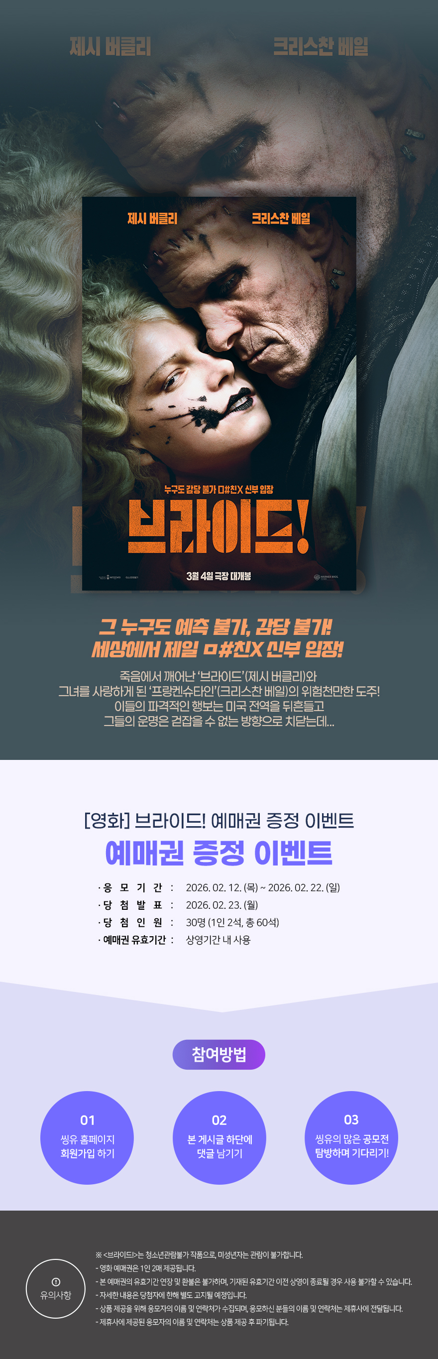 추첨을 통해 <브라이드!> 전용 예매권 (1인 2매)를 드립니다.