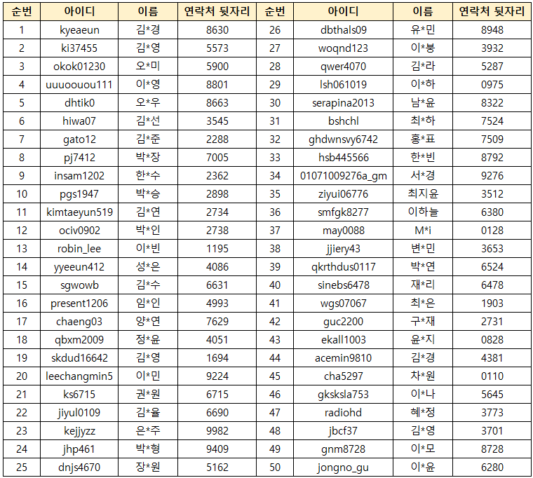 - 경품발송을 위해 당첨자의 개인정보(이름, 휴대폰 번호)를 수집하며, 상품권 발송업체에 제공됩니다.