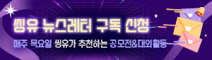 씽유 뉴스레터 신청을 위해 아래에 이메일 주소를 기입해주세요. 공모전 / 대외활동 / 이벤트 소식을 전달해드립니다.