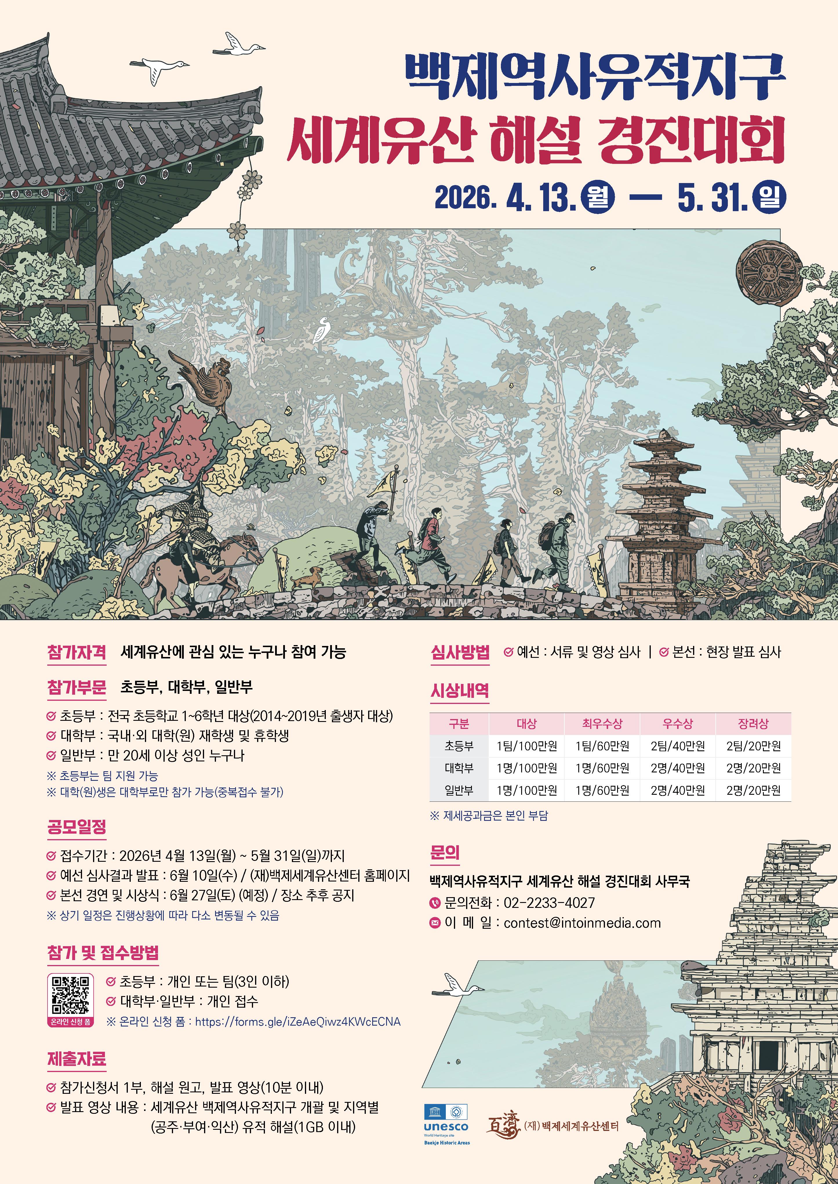 오래된 유적은 말이 없지만, 해설을 통해 다시 말을 건넨다. 백제역사유적지구 역시 누군가의 시선과 목소리를 통해 오늘의 사람들에게 더 생생하게 다가올 수 있다. 그래서 이 경진대회는 단순히 잘 설명하는 사람을 뽑는 자리가 아니라, 세계유산을 현재의 언어로 되살리고 더 많은 사람과 의미를 나누는 과정이라 할 수 있다. 백제가 남긴 시간의 흔적을 오늘의 이야기로 바꾸는 일, 그리고 그 가치를 더 넓게 전하는 일. 백제역사유적지구 세계유산 해설 경진대회는 바로 그 출발점이 되어줄 수 있을 것이다.