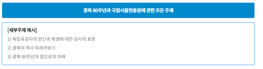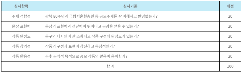 - 출품작 표현 및 제출 시 호국영령, 순국선열에 대한 부정적인 의미의 직ㆍ간접적인 표현
