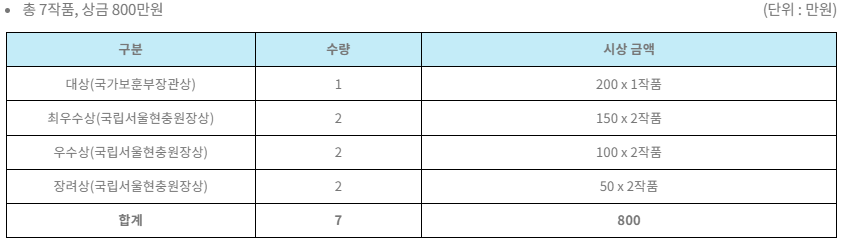 - 공모전 홈페이지 접수 : www.국립서울현충원멋글씨공모전.com