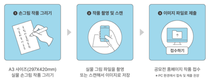 - 실물 그림 파일을 촬영 또는 스캔하여 이미지 파일(jpg,jpeg,png)로 제출
