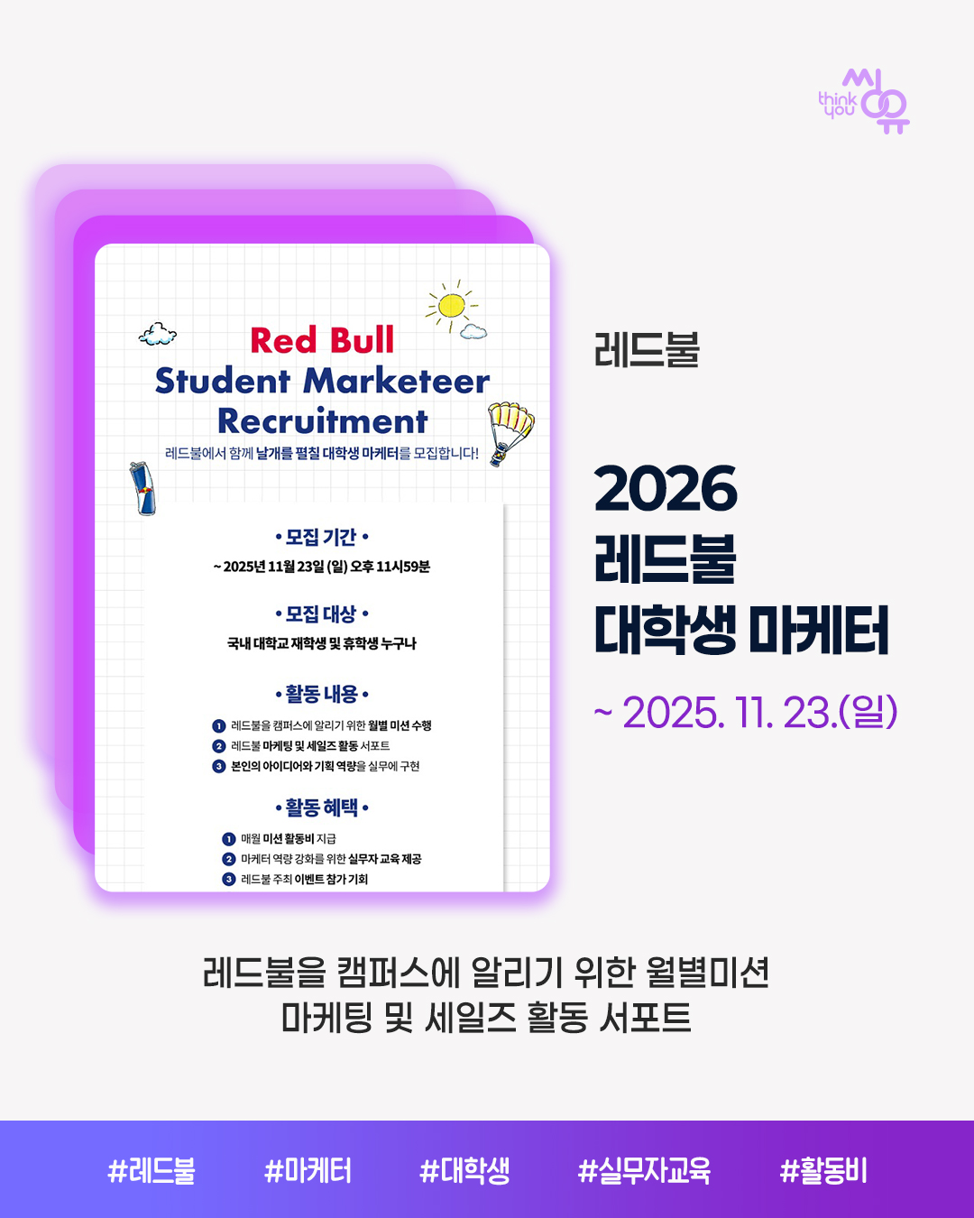 씽유 뉴스레터 신청을 위해 아래에 이메일 주소를 기입해주세요. 공모전 / 대외활동 / 이벤트 소식을 전달해드립니다.