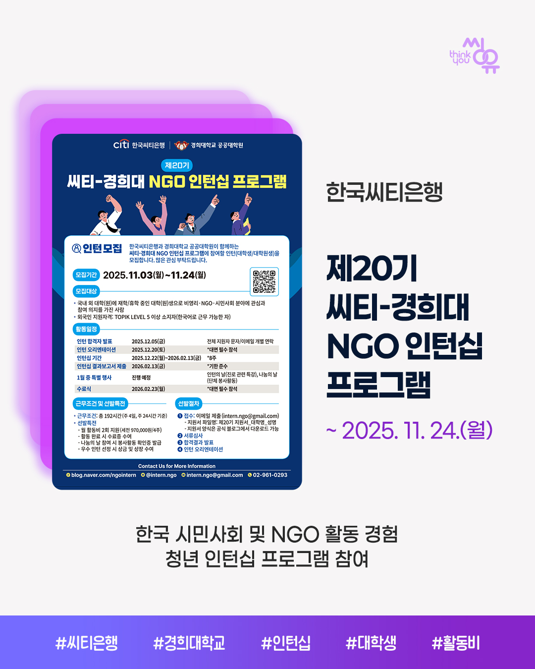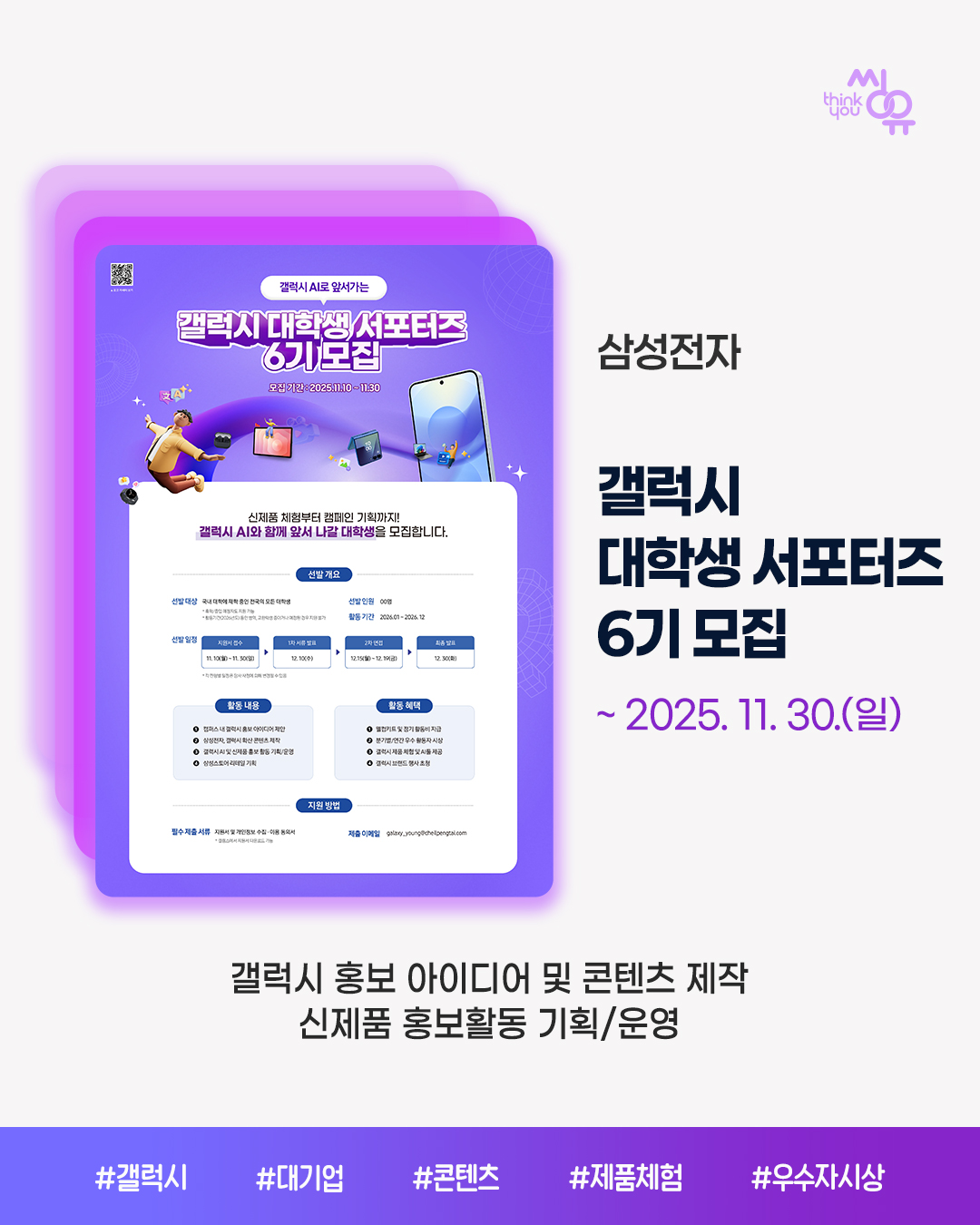 씽유 뉴스레터 신청을 위해 아래에 이메일 주소를 기입해주세요. 공모전 / 대외활동 / 이벤트 소식을 전달해드립니다.