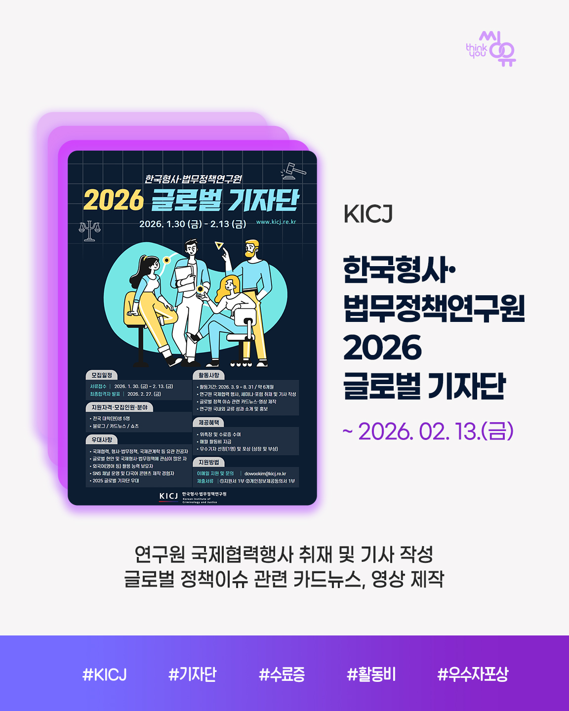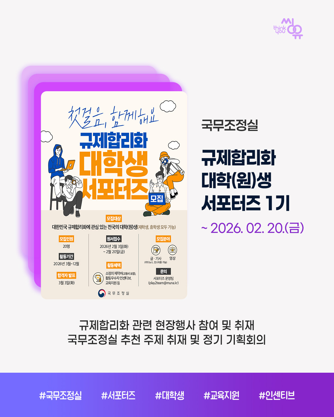 씽유 뉴스레터 신청을 위해 아래에 이메일 주소를 기입해주세요. 공모전 / 대외활동 / 이벤트 소식을 전달해드립니다.
