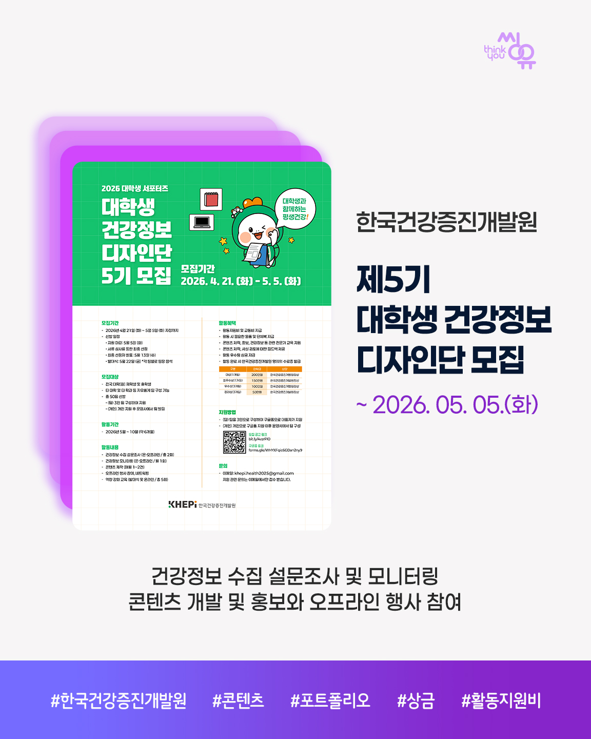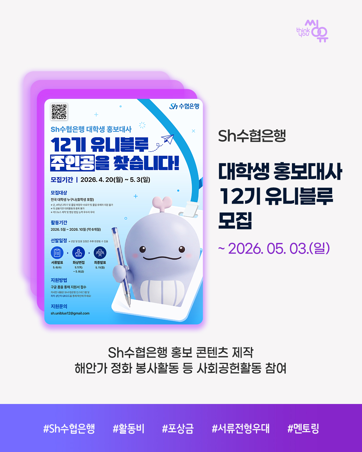 씽유 뉴스레터 신청을 위해 아래에 이메일 주소를 기입해주세요. 공모전 / 대외활동 / 이벤트 소식을 전달해드립니다.
